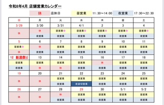 ※但し、翌月曜日が祝日の場合、日曜日夜18:00~23:00営業させていただき、翌月曜日(祝)を休業日